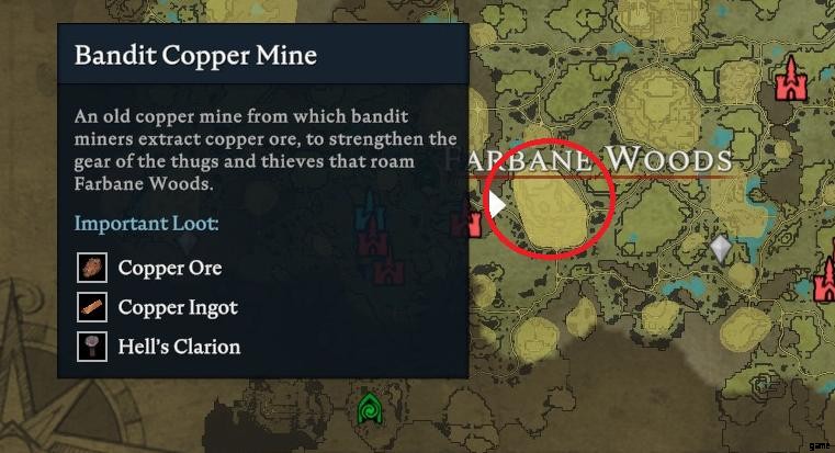 - 入手先:マップのほぼすべてのゾーンで銅鉱石を入手できます。また、ファーベインの森ゾーンでバンディット銅鉱山を見つけることもできます。
