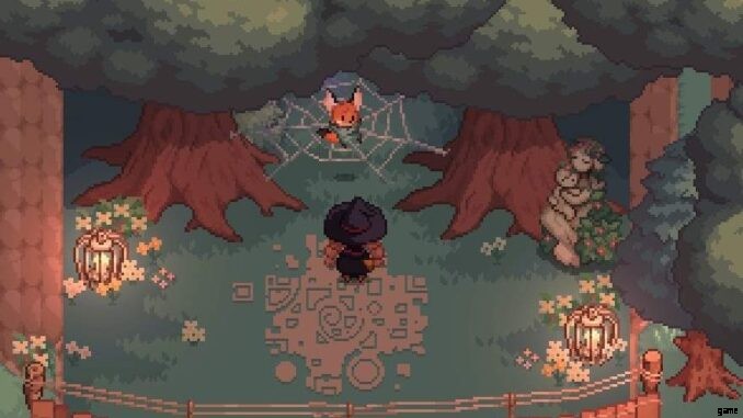 - 魔女の家の下の階にある机を使って、ほうきに枝を追加します