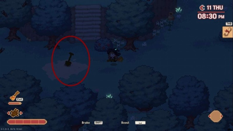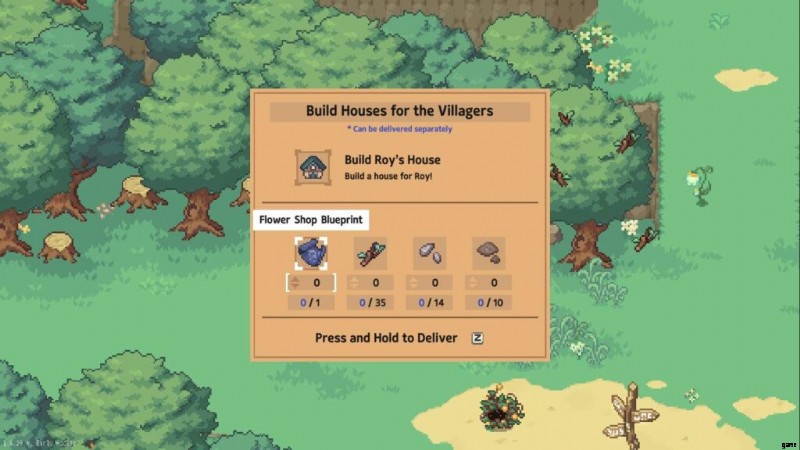 - ダイアナと話し、機械をコイン 70 枚、枝 12 個、石 6 個、泥 6 個で購入