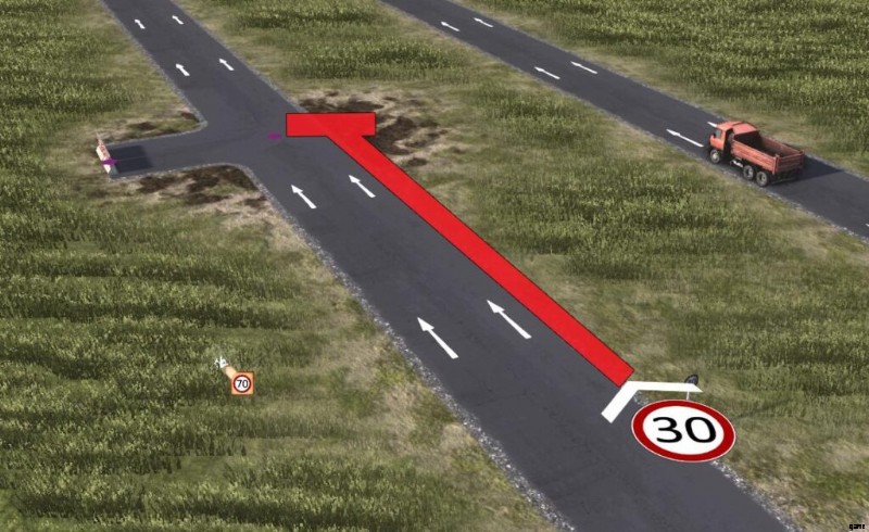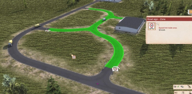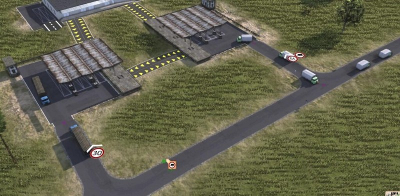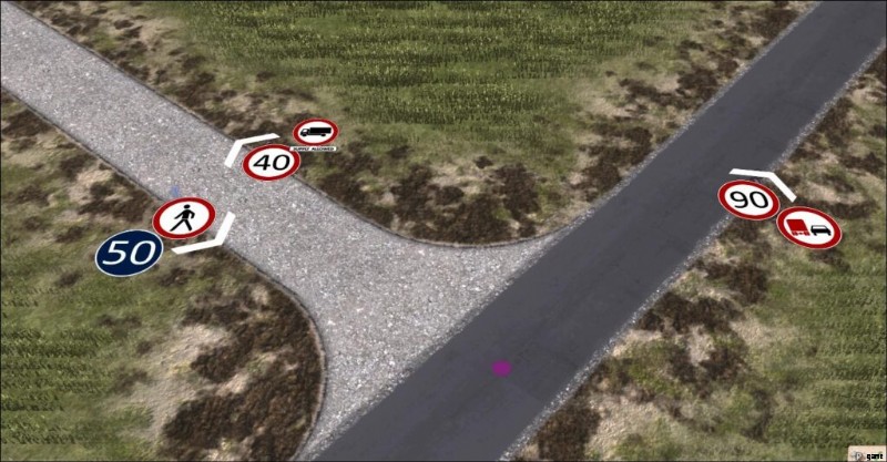 This means if there’s for example two roads to it’s destination, one going through a town with a 60km/h speed limit zone and even some 40km/h parts, and another road that goes around the town but has no speed limit, most vehicles will figure out going around the town is actually faster. Unless of course, we’re talking about our dumpy big fat truck from earlier, the one that can only drive 31km/h anyways. In it’s case, it might decide to just drive through the village. To prohibit that, one would also need to put “No Heavy Vehicles except Supply” at various parts of the town, potentially even at the entrance of it. Or one could put a Weight Limit sign infront of the town. Or a No Trailers.