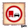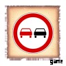 車両は他の車両を追い越すことはできません。この標識には 2 つのバージョンがあります。1 つは、すべての車両によるすべての車両の追い越しを禁止するもので、もう 1 つは大型車両の追い越しのみを禁止しますが、小型車などの低速車両の追い越しは許可します。