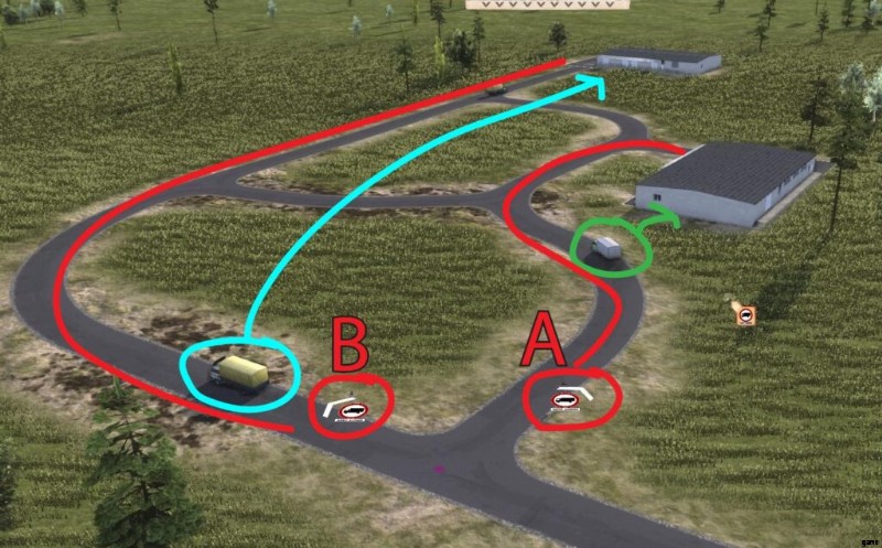 LZ 100 は標識 A を通り過ぎることはできません。シアンの貯蔵庫は遠く離れているためです。だから彼は別の道を歩まなければならない。標識 B も技術的にアクセスを制限していますが、他に取るべき道がないため、彼は供給と見なされ、標識は彼の通過を許可します (交通ロジックの詳細は後述します)。