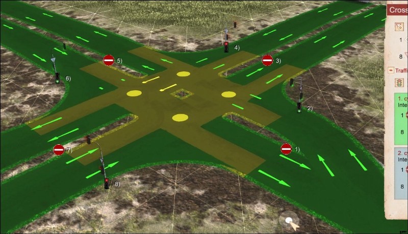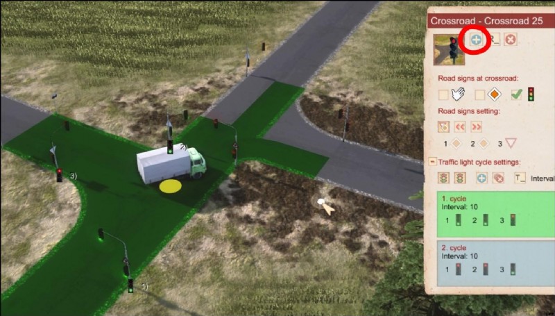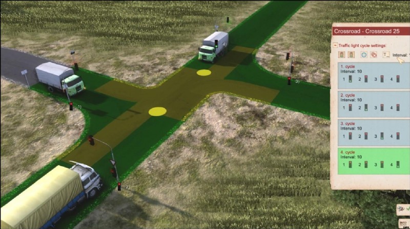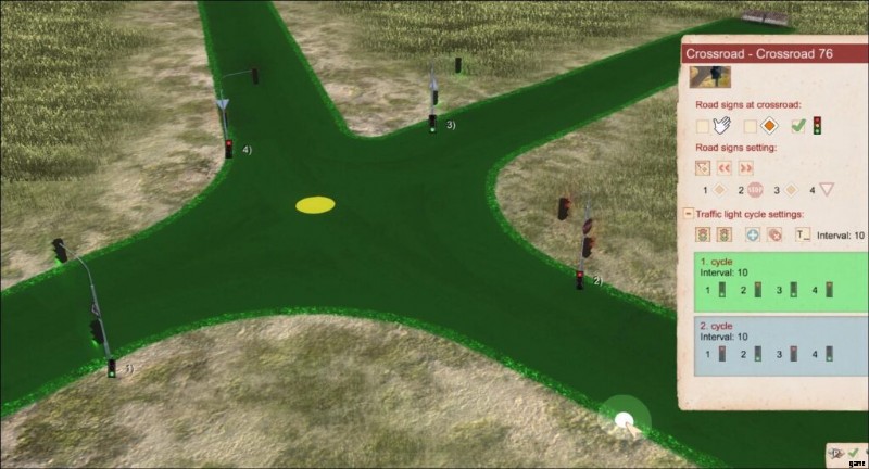 Traffic Lights allow a better flow of traffic at dense intersections. An intersection needs to be completely asphalt. Further, if electricity is enabled in the game options, traffic lights need electricity. If there’s no power, the intersection will fall back to priority signs, which also need to be set up for traffic lights.