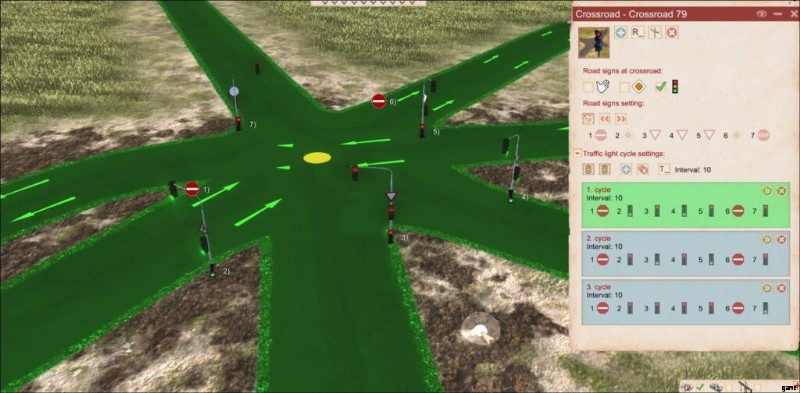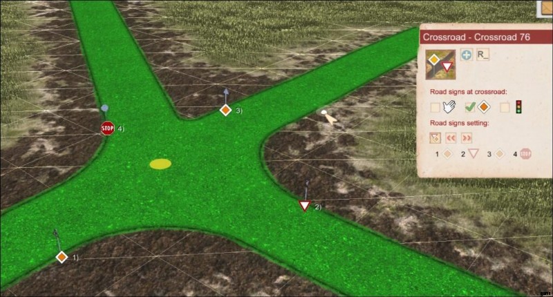 Any intersection can be edited by simply clicking on it. However, the quality of the road limits the type of signage that can be applied.