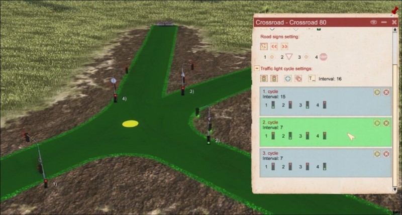 Priority signs overwrite Priority to the Right. Each road is numbered and correlates to a number in the UI.