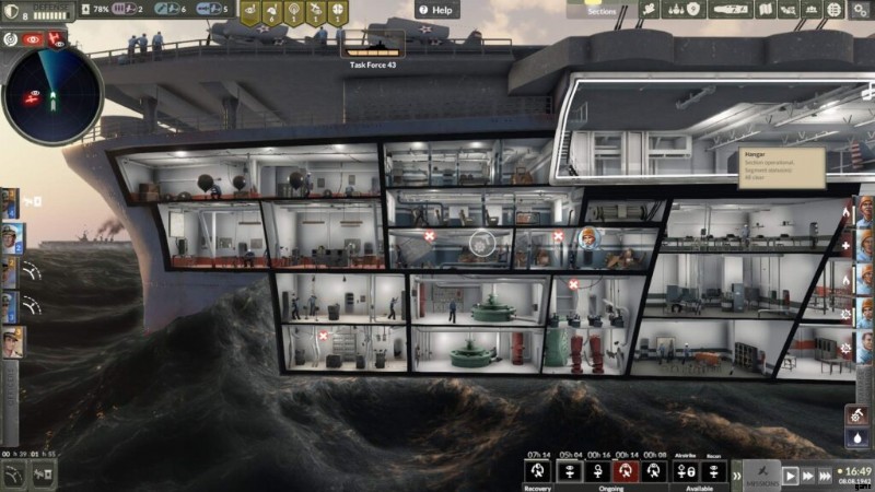 飛行機の墜落は、すべてのデッキ操作をブロックする (およびデッキ キューをクリアする) 効果があるため、かなり迅速に対処する必要があります。ギア タイプの DC チームを割り当てて、難破船を甲板から押し出すことができます。