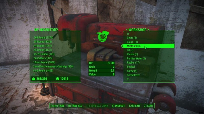 マットフルーツをワークショップのインベントリに配置します。 Mutfruit はアイテムごとに 1 つの食料を提供するため、アイテムごとに 0.5 食料しか与えないレイザーグレインのような他の食料よりも好まれます。