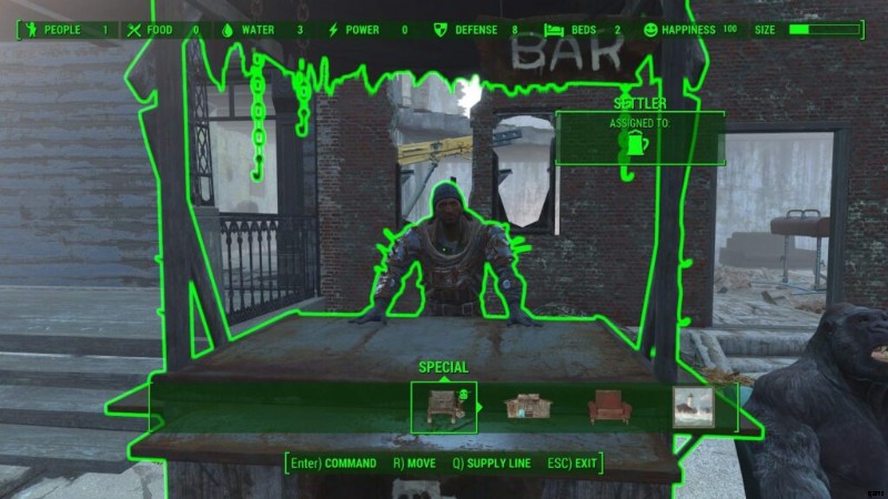 まず最初に、入植者を空の入植地に移動してください。どの居住地でも機能しますが、ミニッツメンは幸福に値しないため、サンクチュアリを使用しないことをお勧めします.私が最終的に使った居留地はジャマイカ平野でした.