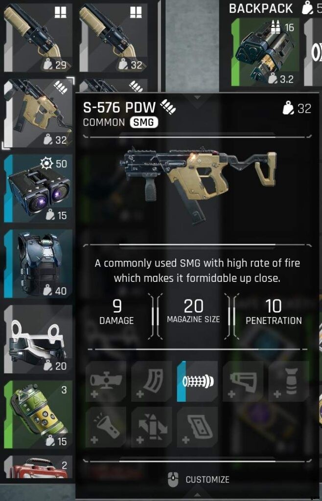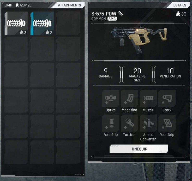 重さを見ると、どの銃にアタッチメントが付いているかがわかります。装備するアタッチメントの数が多いほど、銃は重くなります!銃にカーソルを合わせると、装備されているアタッチメントも表示されます。