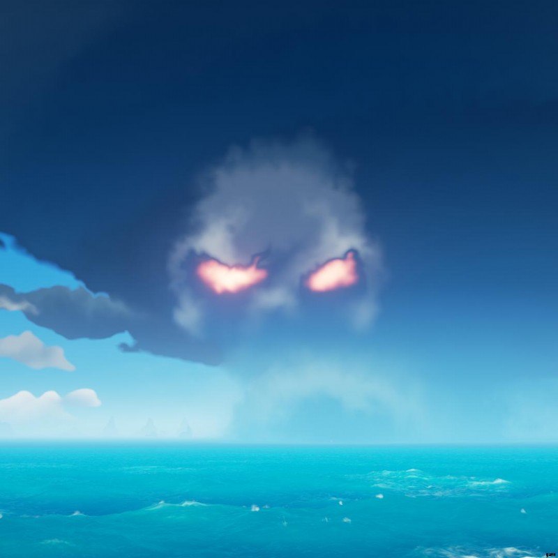 フォート オブ ザ ダムドがアクティブであることは、フォートの上空に巨大な赤い目のスカル クラウドが現れることで示されます。