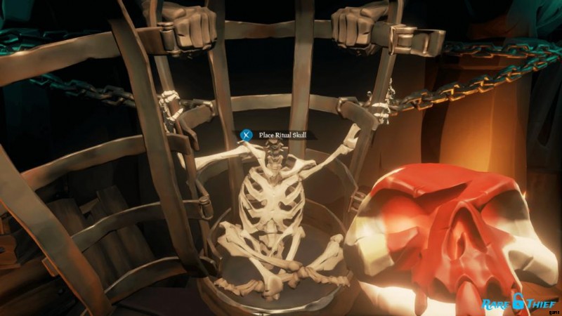 すべての彫像に火をつけた後、頭のないスケルトンのいる檻が開きます。ここでは、儀式を開始するためにスケルトンの首に儀式の頭蓋骨を配置する必要があります。