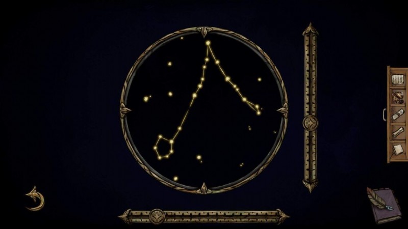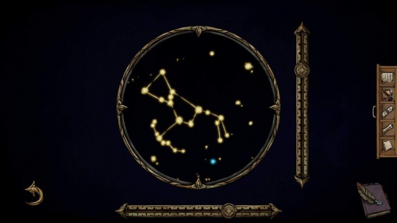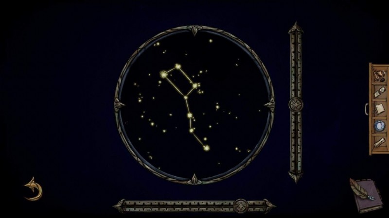 - 望遠鏡をクリックし、うお座の星座が見つかるまでレバーを動かします (正しい位置は下の画像で確認できます):