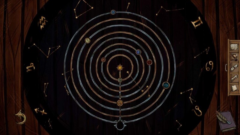 - (skippable in the second playthrough) One shelf below the safe, click on the tarot card book and go to the end, where you see a page with one button:“Spread”; this will start a tarot reading and grant you one achievement: