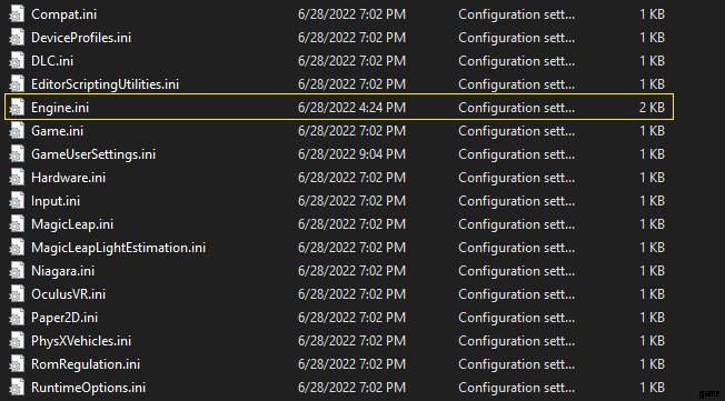 - その後、ファイルを保存し、Engine.ini をもう一度右クリックします。