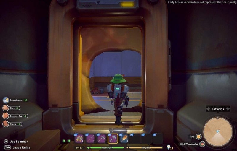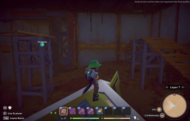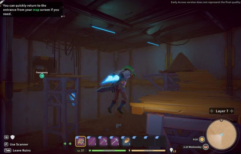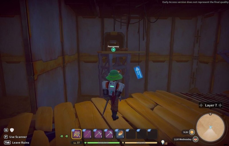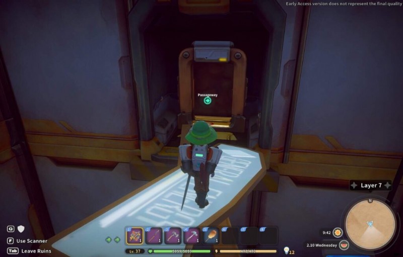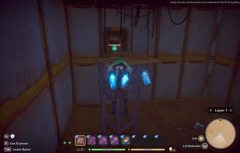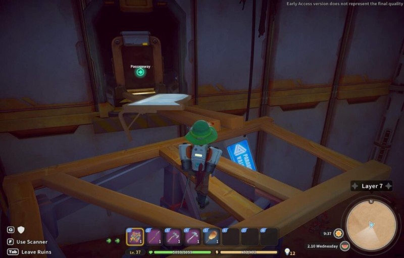乗っているプラットホームから出入り口前のプラットホームに飛びます。しっかりしたプラットフォームのように機能することに注意してください。穴があっても気にしないでください: