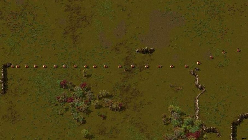 これを行うためのリソースは、特に Deathworld Marathon の設定では非常に限られている可能性があります。かまどは、手作りするのに石しか必要としない安価な資源です。炉の間隔を空けた列を使用して、大まかな境界線と将来の資源パッチへの道を概説することで、これらの重要な領域への敵の拡大を阻止します.溶鉱炉に対する敵の攻撃は、拡張が試みられた可能性のある領域を強調表示 (警告) します。