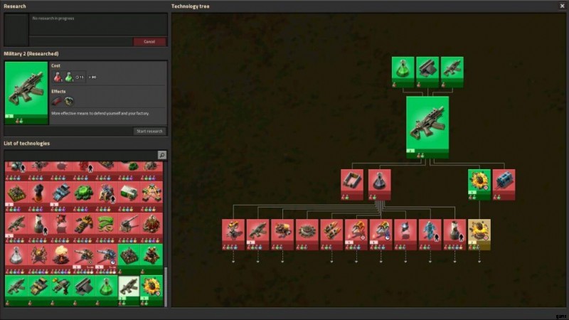 早期に取得するための最も重要なテクノロジーの 1 つは、ミリタリー 2 です。これにより、プレイヤーは手榴弾にアクセスできるようになります。これは、Factorio の初期のバイターに対して非常に効果的です。この研究を優先することは価値があります。これは、プレイヤーが二次武器を使用できるようにするだけでなく、手榴弾で複数の敵を排除し、鉄資源を節約できるためです。プレイヤーは手榴弾を投げると同時に走ることもできます。これにより、プレイヤーは敵やスピッター/ワームによるダメージを回避しやすくなります。