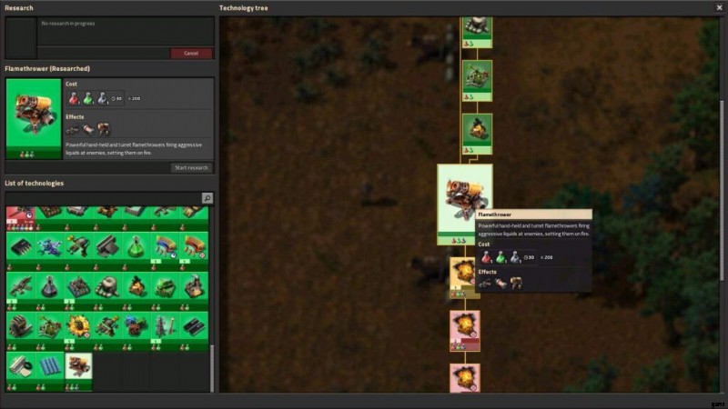 火炎放射器タレットは信じられないほど効果的ですが、火は工場の汚染を吸収している近くの森林にとって危険なものになる可能性があります.十分な注意を払わないと、タレットの配置が間違っていると、近くの森林が焼失する可能性があります。火炎放射器タレットの射撃範囲内にある接続する木を切り倒し、武器が攻撃された場合に森全体が焼き尽くされるのを防ぎます。または、火炎放射器タレットを森のセグメントの後に配置します。 (炎は木が地面に落ちたときにのみ火をつけることに注意してください)。