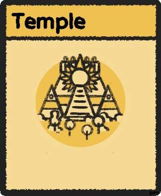 ゴールデン ゴブレット カードをテンプル カードに重ねると、デーモン カードが召喚されます。 5x 板、5x レンガ、3x 鉄の棒、3x 村人を積み重ねて寺院カードを作成できます。