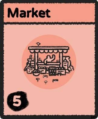 マーケット スタックを構築するには、レンガ 1 個、板 1 個、コイン 3 個、村人 1 個。