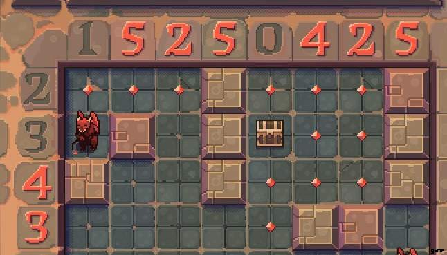 空白をマークされたスペースに変えようとしています。行と列の数字は、壁の数を示しています。この情報を使用してスペースをマークします。パズルのグリッドは 8×8 であるため、各行に 8 つのスペース、各列に 8 つのスペースがあることに注意してください。行が 0 の場合は、すべて開いているとマークします。 8 と表示されている場合は、すべての壁に印を付けます。 6 と表示され、モンスターが 2 体いる場合、追加で 8 になるので、すべての壁に印を付けます。 3 と表示され、マークされた壁が 1 つある場合、他の 7 つのスペースには 2 つの壁があります。これらの 7 つのスペースに既に 1 つのモンスター、1 つの宝物、3 つのオープン マークが含まれている場合、2 つの空白スペースがあります。それらの 2 つの空白を壁としてマークします。空白のスペースの数と、マークするために残っている壁の数を常に比較してください。行または列のすべての壁に印を付けると、番号が灰色に変わります。残りのスペースにマークを付けてください!