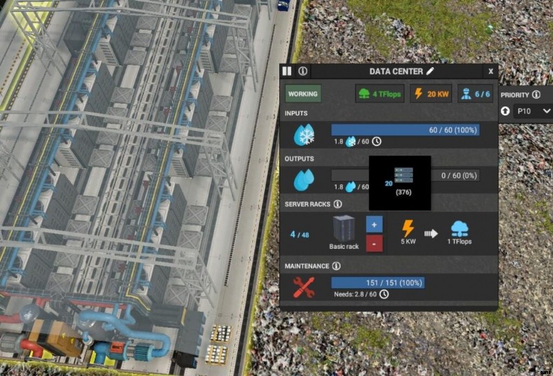 データセンターは、サーバーを保持し、tflops を生成する特別な建物です。詰め込んだ20台のサーバーごとに1 tflopを取得します。サーバー-赤のエレクトロニクスは 1-1 です。これが初期投資の大部分です。あなたが極度に痩せているなら、実際に必要なのは 4 tflops だけです。持てば持つほど、すべてが速く進みます。