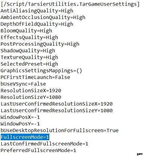 その行の下のどこかに FullscreenMode=1 を変更または追加します。メモ帳を保存して終了することを忘れないでください。