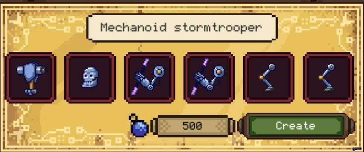 - これを完了すると、1 日に数個の機械部品が手に入ります。新しい実行では、メカノイド ストームトルーパーを作成できるようになるまで、猫を数回送り出して部品を集めます。
