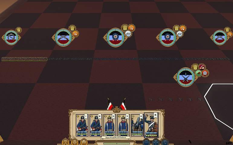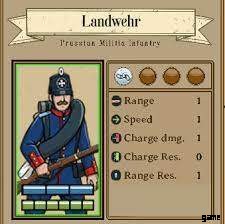 配備:最初に行うことは、Landwehrs を中央に一列に配置することです。次に戦列歩兵を側面に置きます。迫撃砲を後列の中央近くに置いた後。最後にハッサーと後列の側面を置きます。