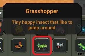 次に、ホットバーの「クリーチャー」メニューに移動し、「グラスホッパー」を選択します。