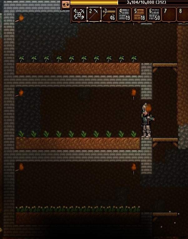 階層化された農業は、農場区画を互いの上に作成するだけです。これを行う最善の方法は、表面からそれほど多くのスペースをとらないように、必要なだけ多くの層を必要なだけ深く掘り下げることです.ただし、深く掘れば掘るほど、より多くの材料、ブロック、鉱石に出くわすため、初期のゲームの鉱石を効率的に入手できると同時に、大量の作物や錬金術の材料を栽培するための十分なスペースを確保できます。世界の底に到達し、何らかの理由で表面に戻れない場合は、別のマップ レベルに移動して戻ってきてください。水面に戻ってきます。