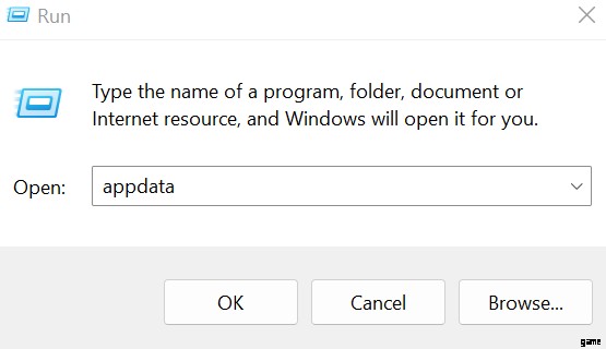 - まず、Windows キー + R を同時に押します。次のウィンドウが表示されます。appdata を入力して [OK] をクリックします。