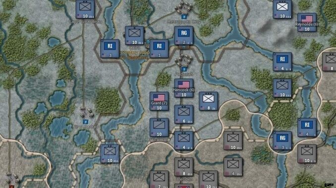 - 主要な河川は通行不可ではありません。私は、ユニットがミシシッピ川を渡って行進することができず、側面を突かれたと思いました。ただし、リバー ボートを使用して戦略的なヘクスをブロックすることはできます。