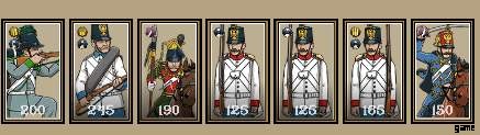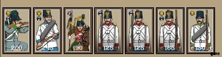 ご覧のとおり、2 種類の戦列歩兵、3 人の小競り合い兵、1 人の重歩兵から選択できます。あなたの軍隊のほとんどが歩兵で構成されていることを考えると、私はそれらに焦点を当てます.