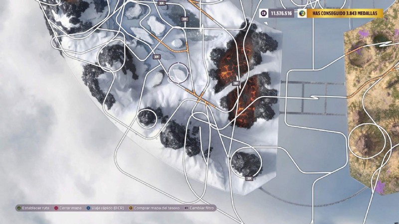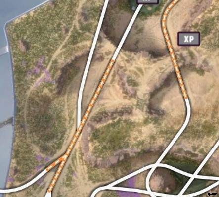ヒントとして、通常、ホット ホイールのトラックを離れて、マップに示されているエリアまで「クロス カントリー」を運転できるエリアに行く必要があります。これらの領域はオレンジ色でハイライトされています。