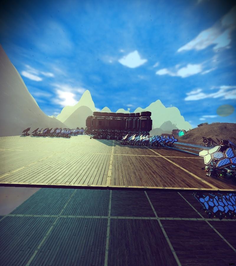 簡単に移動できるように、代替ランディング パッドと 4 つのソーラー パネルとバッテリーを備えたテレポーターをセットアップします。約 3 時間後に戻ってきて 1 億ユニットを購入し、貨物船に着陸したトレーダーに販売して、地域経済を崩壊させたり、需要価格を押し下げたりしないようにします。