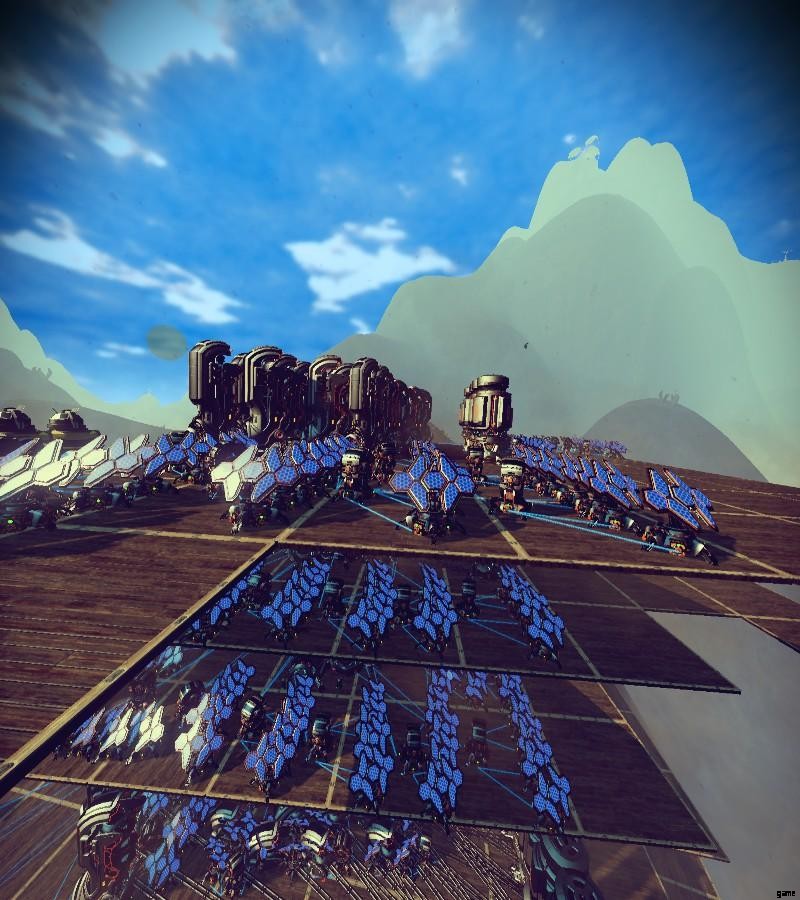 下または上から始めて、下または上に進みます。 8 つの供給デポを配置したら、隣同士にソーラー パネルを配置し、それらをどのように配置するかを考え始めます。ミネラル抽出器のためのスペースがあるように、それらを横に離しておいてください.それらを 8 つずつ 8 つのグループに分けます。4 つのソーラー パネルを 1 つのバッテリーに接続し、すべてが配線され、16 個のバッテリーが鉱物抽出器に電力を供給する準備が整うまで、これを続けます。