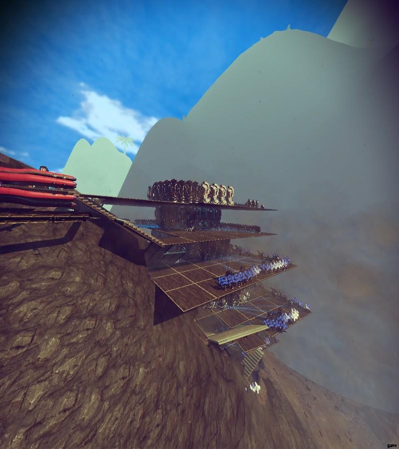 ベースコンピューターを1つ落としたら、バイザーで最大密度がどこにあるかを検索し、デカールでマークします.尾根の上にいる場合は、平らな床を作り始めます。多くのスペースが必要です。