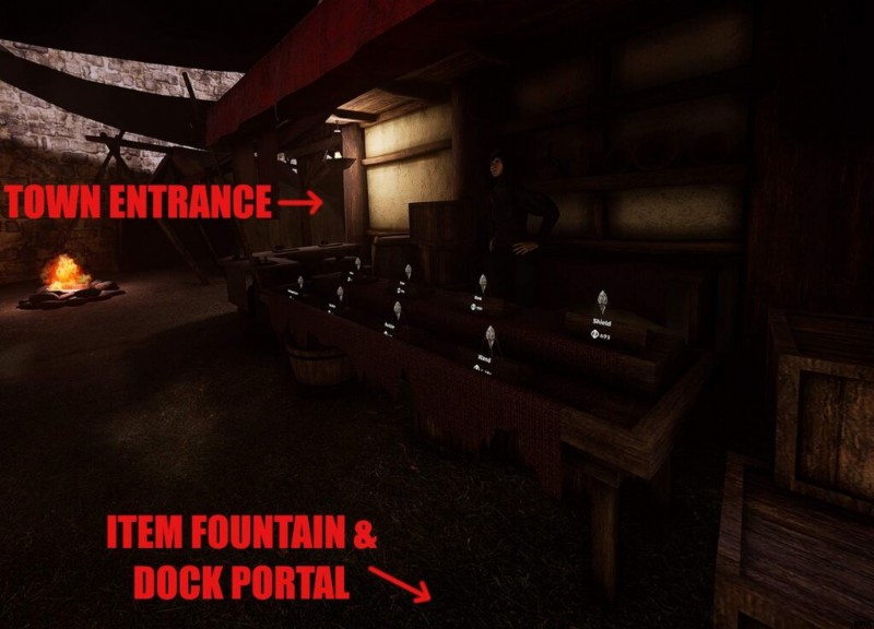 この噴水は単なる装飾ではありません。アイテムを水に落とすと、無料でアイテム クリスタルに戻ります。ダンジョンで拾ったアイテムは所持品に固定されるため、これを行うと未入手のアイテムに戻ります。これが他のプレイヤーとの取引方法です!