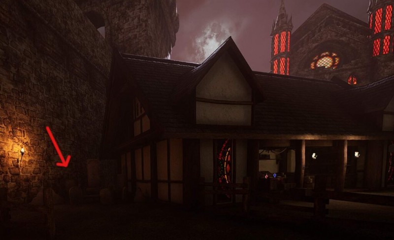 ポーション ショップの左側にある小さな墓地に注意してください。