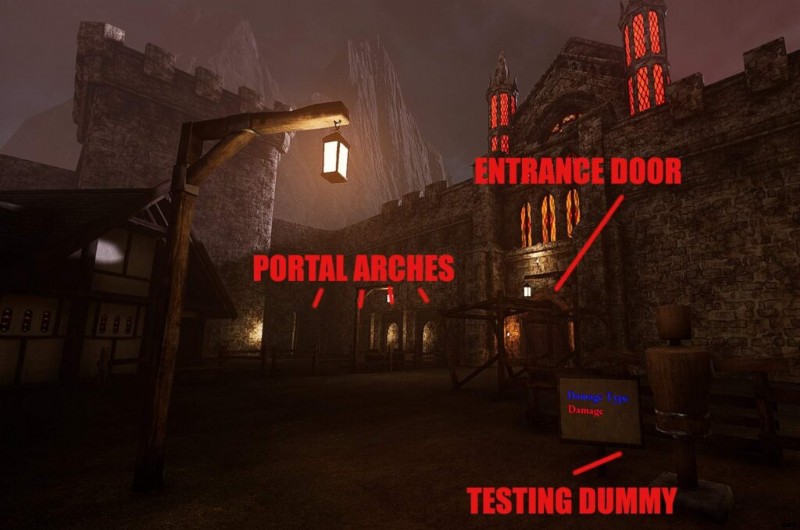 ドアの右側には、あなたが行っている基本的なダメージを示すトレーニング ダミーがあり、装備を選ぶのに最適です。