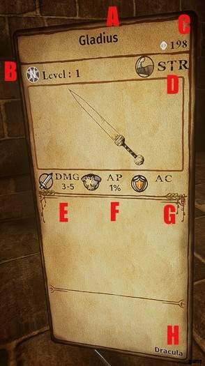 アイテムの統計を表示するには、インベントリのアイコンをクリックするか、ワールド内のアイテムをポイントします。アイテム カードが表示されます。