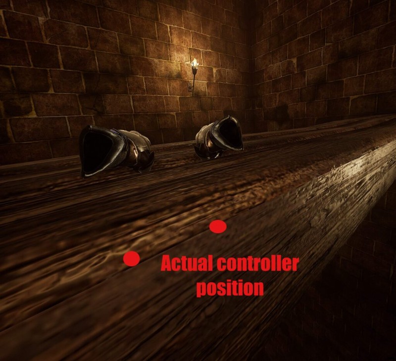 If you caught the ledge, you should now be hanging next to it, but it’s very likely that your controllers may be slightly disconnected from your hands. Don’t panic, this is normal. Just keep your eye on your in-game hands and don’t flail trying to readjust them. Trust that they’re where you want them to be.