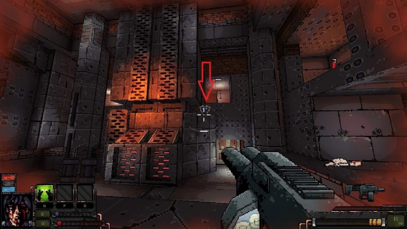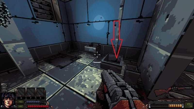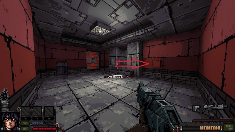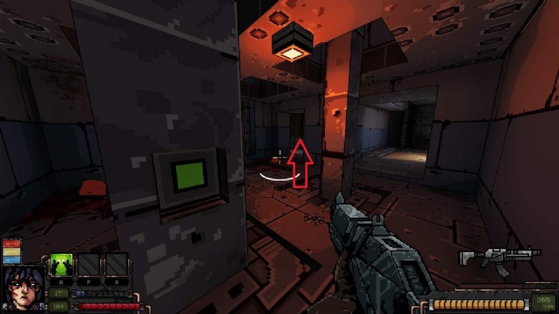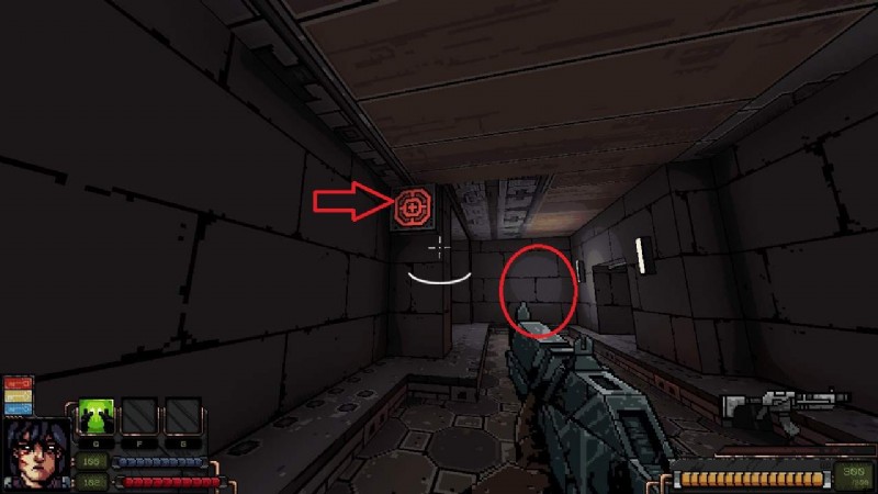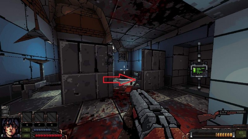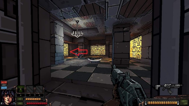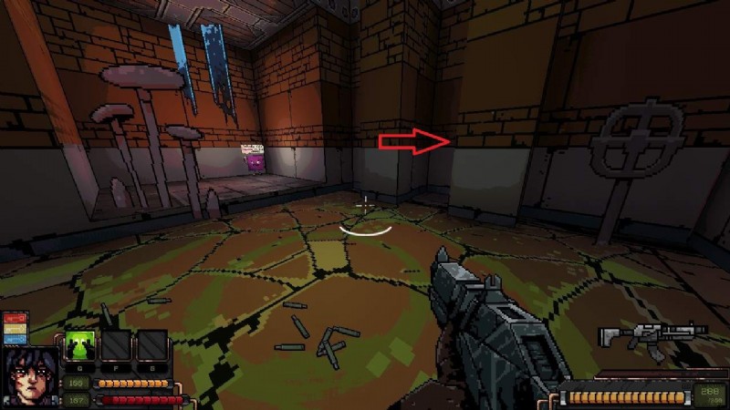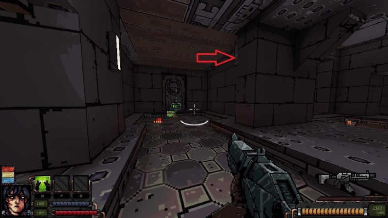 このコンピューターのある部屋で、壁の後ろを振り返ると、撃つターゲットがあり、隠しドアが開きます!