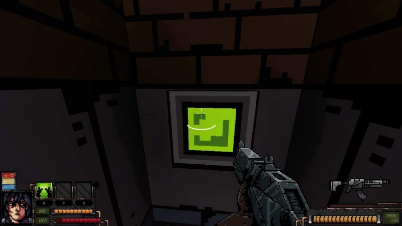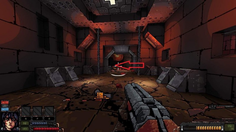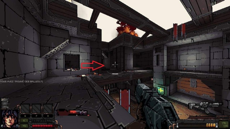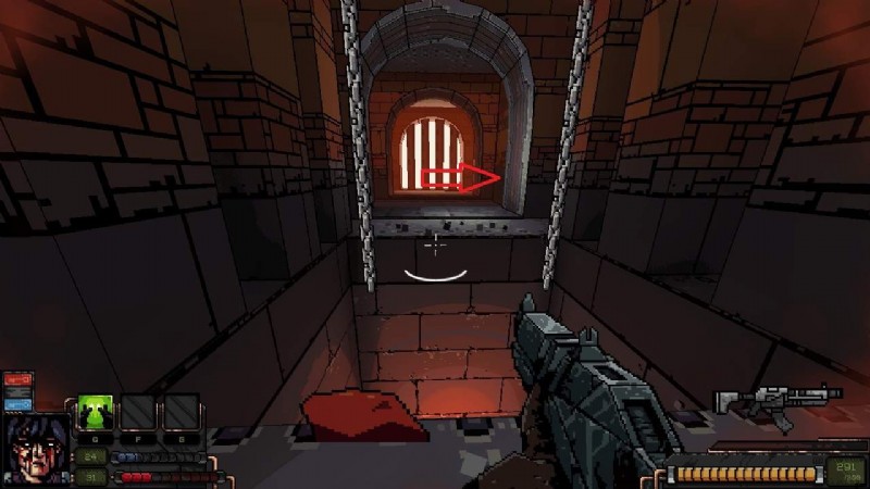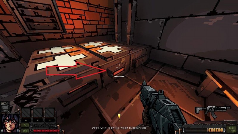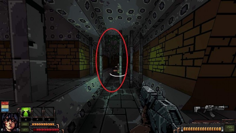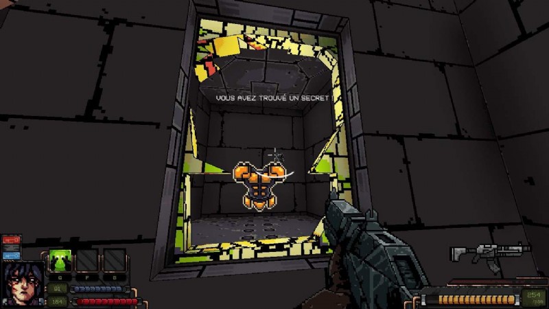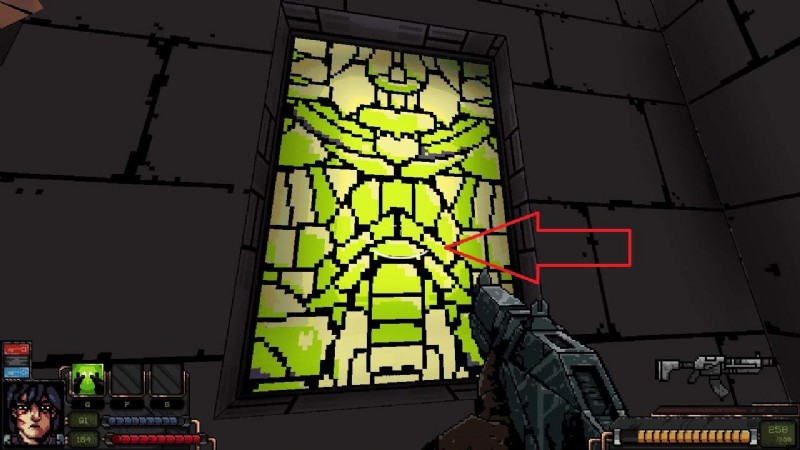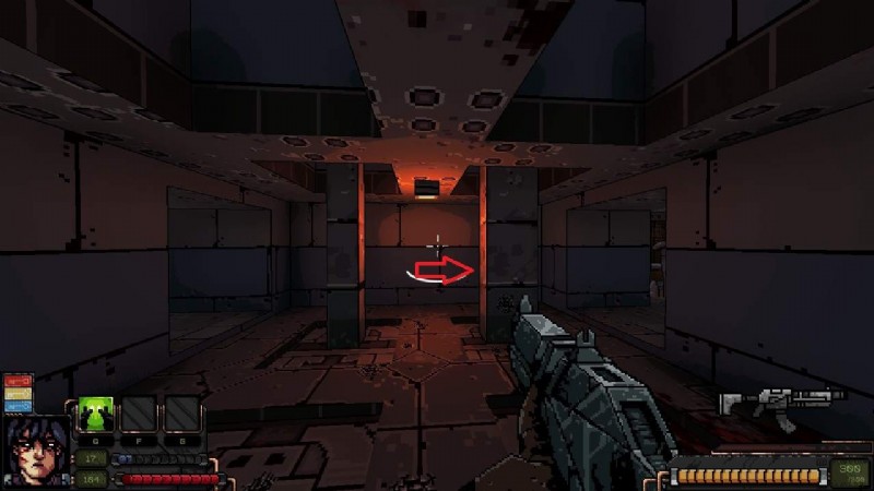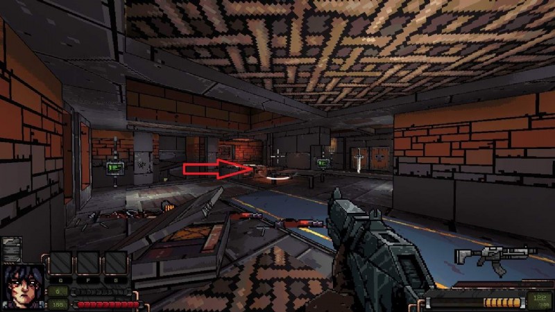 このコンピューターのある部屋で、壁の後ろを振り返ると、撃つターゲットがあり、隠しドアが開きます!