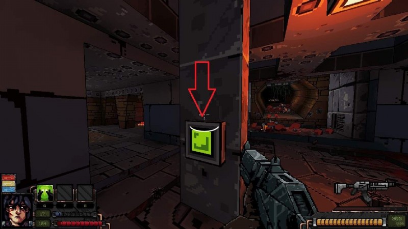 最初の赤いドアのすぐ横に、赤いボタンがあります。