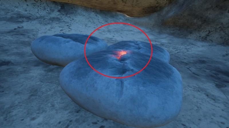 そして、少し左に行くと小さな炭の塊が見えます。武器は燃えているものに刺されます。