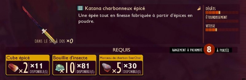 壊れたバージョンや設計図を入手した場合、次に何が起こるかははっきりと覚えていませんが、これが武器です。灼熱の両手アジア刀。スパイシーなダメージ、そして夜にほんの少しの光を提供します。