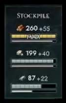 バザールには、他の生産とは完全に分離された独自のリソース生成 (およびストレージ) があります。各バザールは採石場 (ゴールドを除く) と範囲内の材木キャンプによって生産量が増加し、ウェアハウス ボーナスは無視されますが、最初のバザールにはそれとは関係のないフラットな生産量もあります。次のようになります: