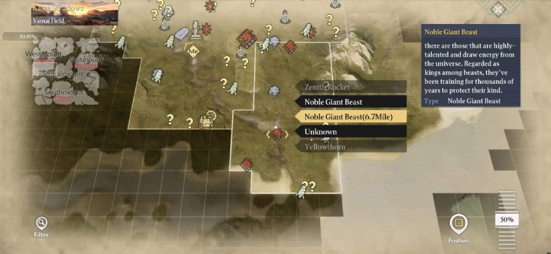 キマイラは、世界中にランダムにスポーンする 8,000 年の貴獣です。旅行者は、マップ上の高貴な獣のアイコンを追跡して、その位置を特定できます。注:8,000 年のノーブル キマイラには祝福されたバフが付属しており、ダメージを与えるには突破の封印 I、II、III、IV が必要です。